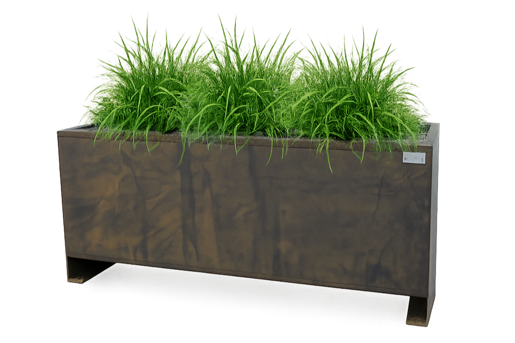 La Jardinière Corten est fabriquée en acier corten, un matériau robuste qui développe une patine naturelle avec le temps. Son esthétique brute s'intègre parfaitement aux aménagements urbains, commerciaux ou résidentiels.