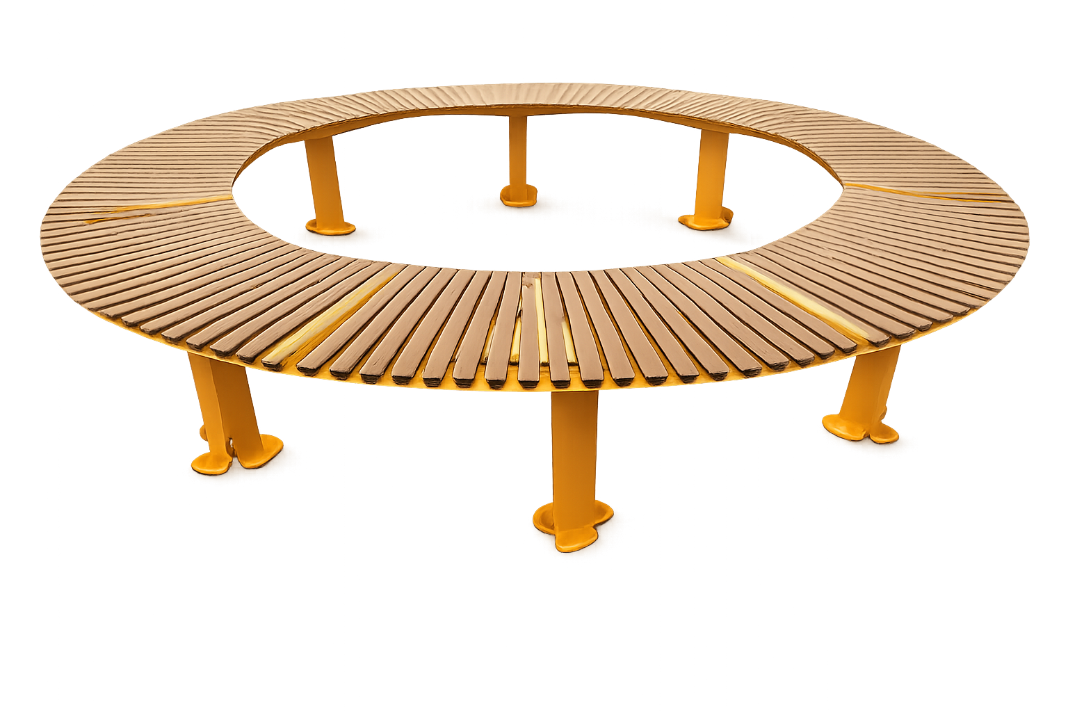 La plateforme circulaire est un mobilier urbain polyvalent conçu pour créer des espaces conviviaux en extérieur. Son design associe une structure en acier peint et une surface en bois ou composite. Elle sert d’assise collective, d’espace de rencontre, de scène ou de zone de repos, favorisant l’échange et la détente.