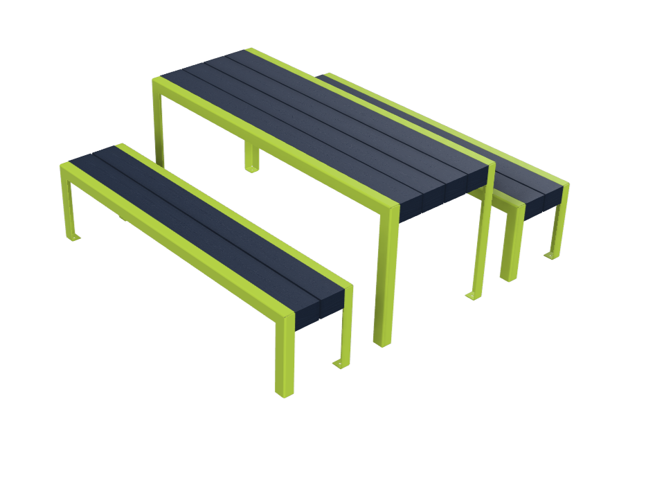 La table se distingue par ses lignes droites et son look contemporain. Sa structure en aluminium s’agence à des lattes de bois massif pour une durabilité optimale. Parfaite pour les parcs, terrasses et aménagements institutionnels.