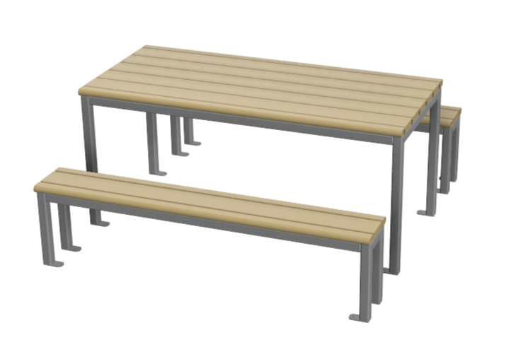 Cette table avec bancs séparés séduit par son design sobre et fonctionnel, pensé pour s’adapter à une grande variété d’espaces et d’usages. Ses lignes droites et épurées en font un mobilier discret et élégant, idéal pour les environnements contemporains.