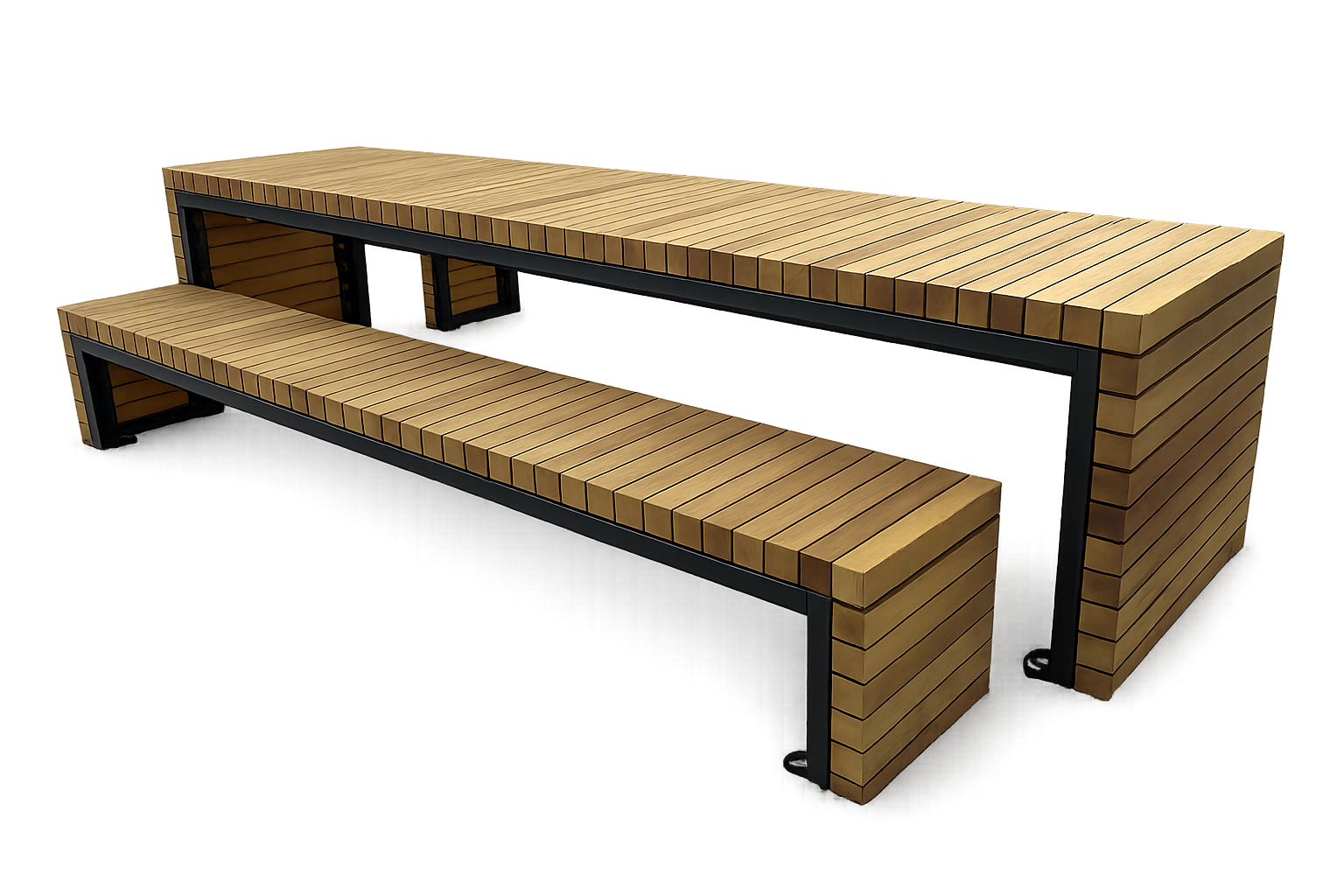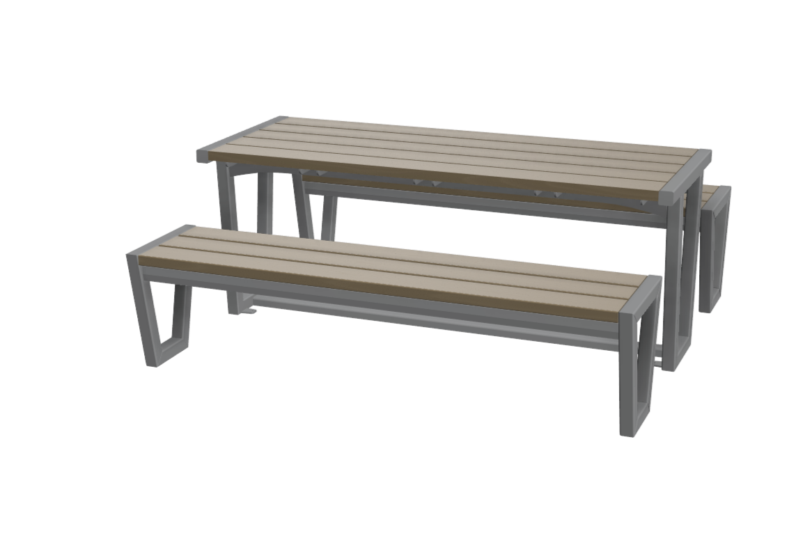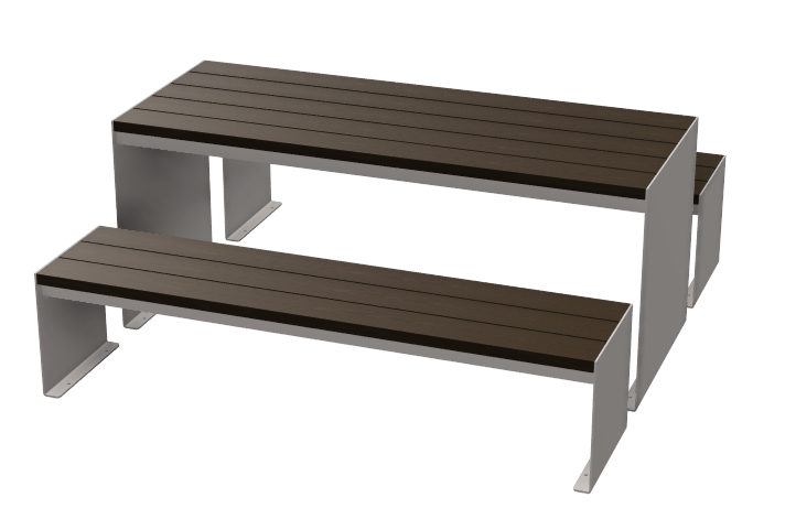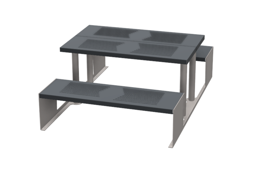 Cette table avec bancs intégrés, entièrement conçue en aluminium, offre une solution de mobilier à la fois contemporaine, durable et sans entretien. Son design épuré et ses lignes graphiques en font un équipement parfaitement adapté aux environnements urbains modernes.