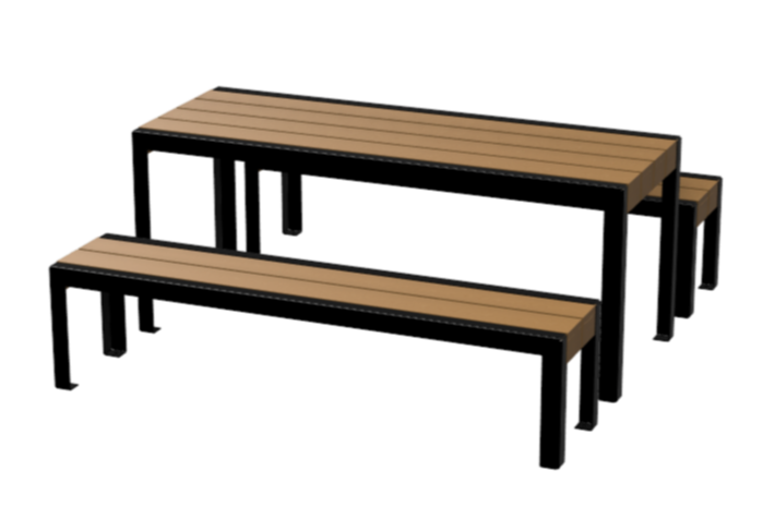 Alliant esthétique contemporaine, robustesse et convivialité, cette table avec bancs est une solution idéale pour aménager vos espaces avec élégance et fonctionnalité